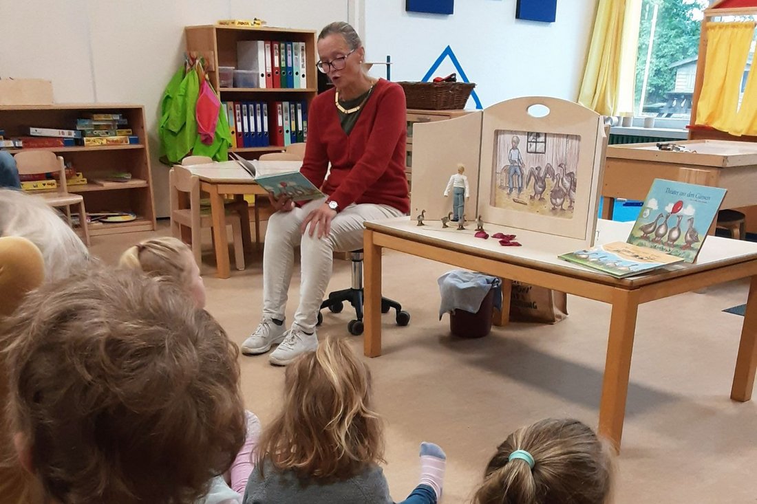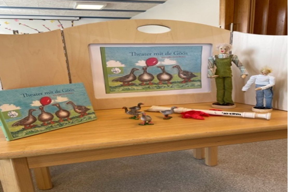An de 19.09.2022 weer Gesa Noffke in de Kinnergoorn Süderstraat in Harrislee un an de 26.09.20222 in Friestadt in de Brückenstraat un hett dat Book „Theater mit de Göös“ as Kamishibai vörleest. Dorbi hebbt de Kinner lehrt, dat een Göös nich argern döörf. Achterna hebbt de Kinner noch Biller vun Göös maalt.