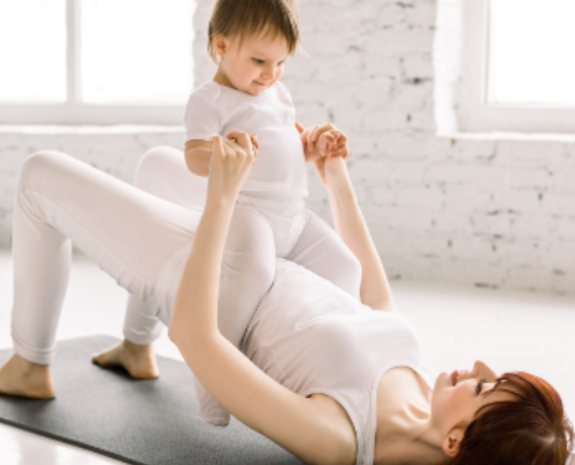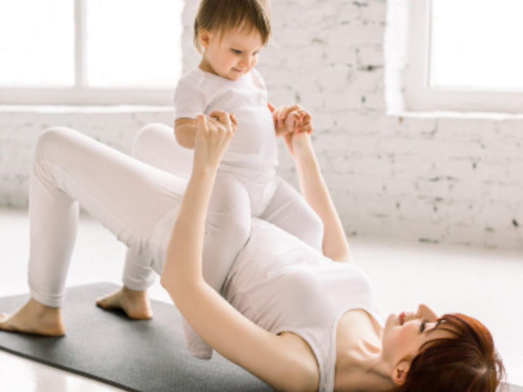 Hier erleben Eltern mit ihrem Kind eine Yogastunde in der alle aktiv, spielerisch und achtsam miteinander agieren.
