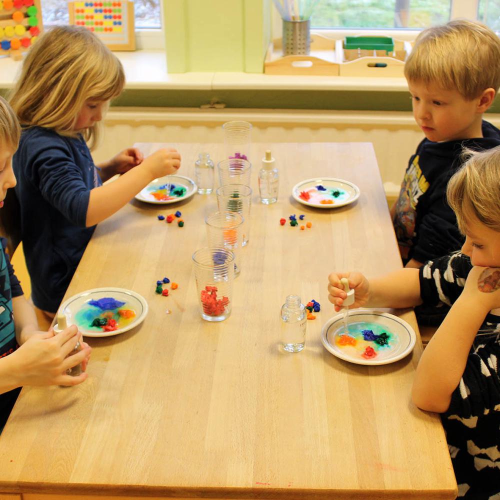 Unser Sprachenprofil Dänisch: Das Leben in einer Grenzregion hat den großen Vorteil, dass man regelmäßig in eine andere Kultur eintauchen kann. Über Spiel und Erlebnisse lernen die Kinder die Sprache und Kultur unseres Nachbarlandes Dänemark kennen. Die Kinder ab 4 Jahren haben die Möglichkeit, sich für den einmal wöchentlichen Dänischclub anzumelden. Im Dänischclub machen die Kinder auf spielerische Weise erste Erfahrungen mit der dänischen Kultur und Sprache. Das geschieht weitestgehend durch das Singen von dänischen Liedern, Lesen von Geschichten und verschiedenen kleinen Spielen. Auch unsere jüngeren Kinder lernen kleine Lieder und Fingerspiele in dänischer Sprache kennen.