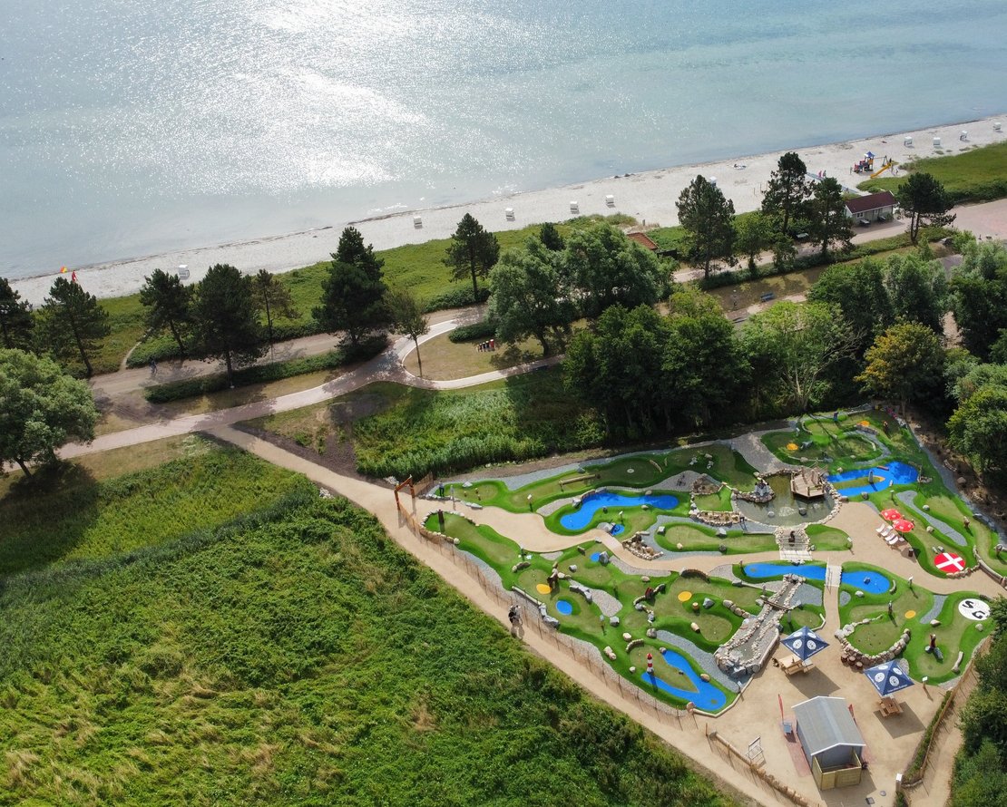 Zwischen Campingplatz und Surfschule findet ihr die Anlage direkt an der Promenade. Auf den 18 abenteuerlustigen Spielbahnen ist es das Ziel den Spielball mit möglichst wenig Schlägen in das Zielloch zu manövrieren. Verschiedene Hindernisse, Findlinge und Holzstämme erschweren das Spiel.